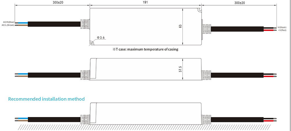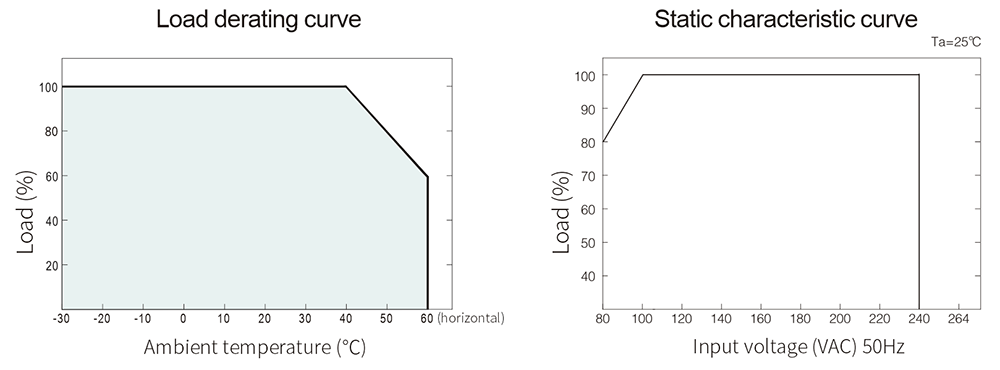 | 笔记 | 1. 除另有说明外,所有参数均在 230VAC 输入电压、额定负载和 25°C 条件下测量。 2、纹波和噪声电压是在20MHz带宽示波器上测量的,12英寸双绞线端,电容为0.1μ和47μ。 3、容差是电压设定误差、电压调整率和电流调整率之和。 4、当输入电压较低时,输出需要降额。详细内容请参见静态特性图。 5.电源为认为是与终端设备配合使用的部件,因为EMC受整个设备的影响,终端设备制造商重新验证整个设备的EMC。 6.适用于无阳光直射的室内或室外条件,请避免在水中浸泡超过30分钟。 | ||