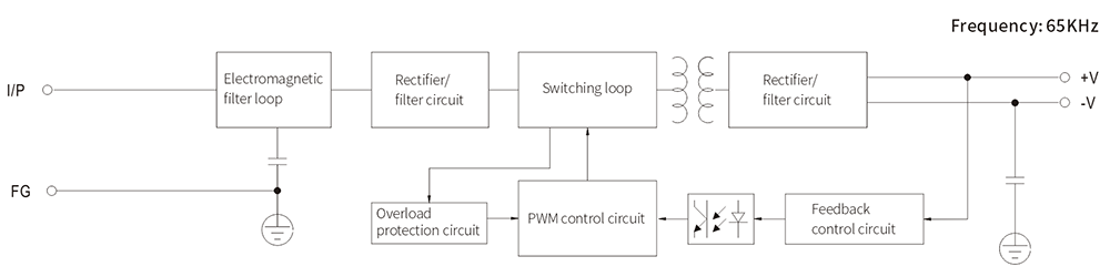 | 笔记 | 1、如无特殊说明,所有参数均在230VAC电压输入、额定负载、25℃条件下测量。 2、纹波和噪声电压是在20MHz带宽示波器上测量的,12英寸双绞线端,电容为0.1μ和47μ。 3、精度:电压设定误差、线性调整率、负载调整率。 4、线性调整率测量方法:在额定负载下,从低电压到高电压测试。 5、负载调整率测量方法:从0%到100%额定负载。 6.电源应视为系统中部件的一部分,应与终端设备一起确认电磁兼容性。 | ||