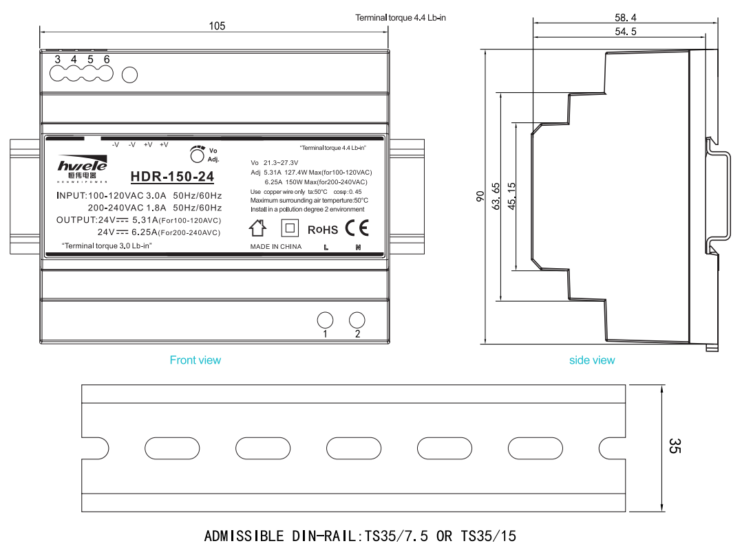 | 模型 | HDR-60-12 | HDR-60-15 | HDR-60-24 | HDR-60-48 | |