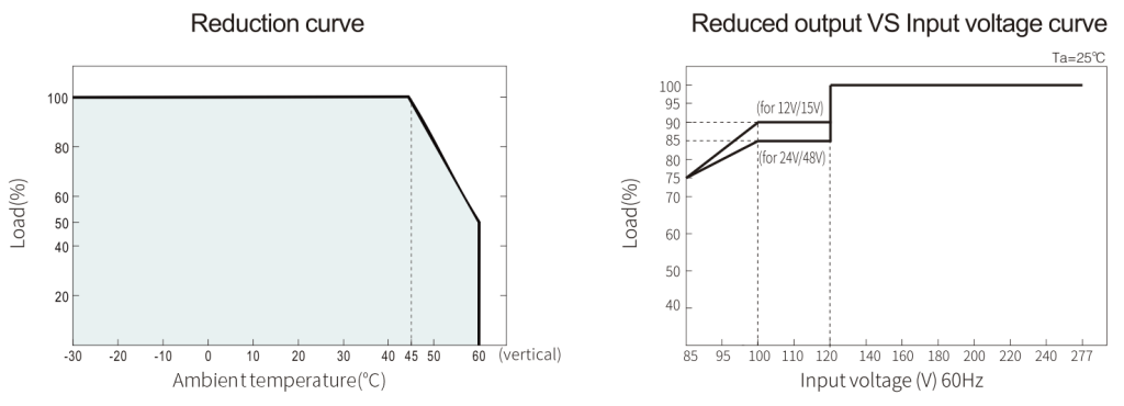 | 笔记 | 1. 未特别提及的所有参数均在 230VAC 输入、额定负载、环境温度 25℃ 下测量。 2. 纹波和噪声是在 20MHz 带宽下使用 12″ 双绞线(端接 0.1uf 和 47uf 并联电容器)测量的。 3. 容差:包括设置容差、线路调整率和负载调整率。 |