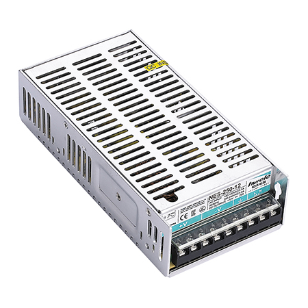 NES-250W系列是一款250W单路输出电源,采用48mm薄型设计,采用全局电压输入,全系列提供12V、15V、24V、36V、48V输出,效率高达87%,金属外壳设计使其具有优异的低电磁发射干扰,并加强了散热能力。 NES-250W无需风扇即可在-20°C至+60°C的温度范围内运行。